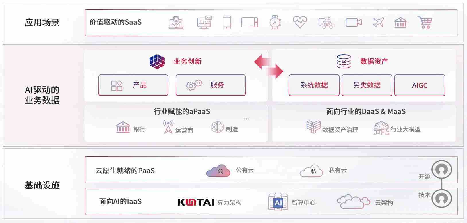 数字时代,,围绕企业数字化转型的关键要素,,z6尊龙数码开创性的提出数云融合战略和技术体系框架,,,,着力在云原生、、、数字原生、、、AI原生和信创产业上架构产品和服务能力,,,,为处在不同数字化转型阶段的快消零售、、汽车、、金融、、、、医疗、、、政企、、教育、、、运营商等行业客户提供泛在的敏捷IT能力和融合的数据驱动能力,,,构建跨界融合创新的数字业务场景和新业务模式,,,,助力企业级客户建立面向未来的核心能力和竞争优势,,全面推动社会的数字化、、智能化转型升级。。。。